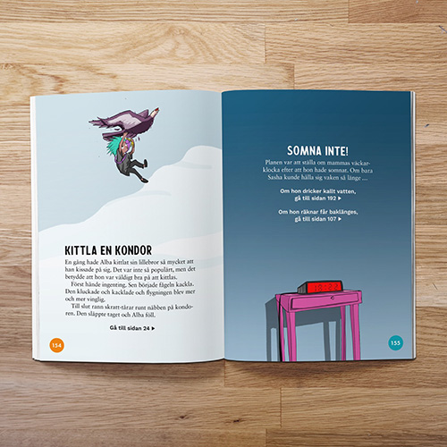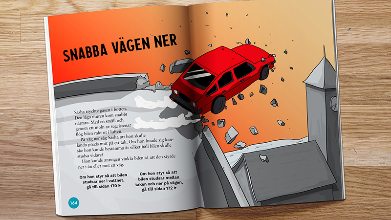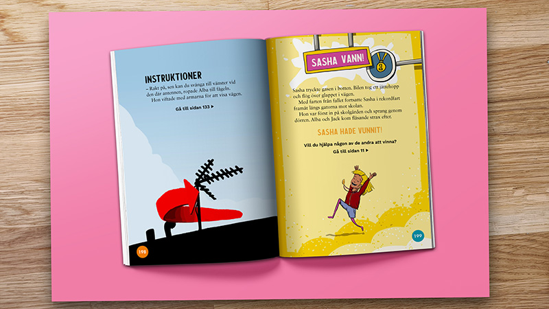 Spännande bok och interaktivt spel i ett! Sasha, Jack och Alba har bestämt sig för att tävla om vem som kommer först till skolan. Alla medel är tillåtna men de behöver DIN hjälp. Det kommer bli full fart, blodtörstande hajar, chokladberg och rymdraketer.